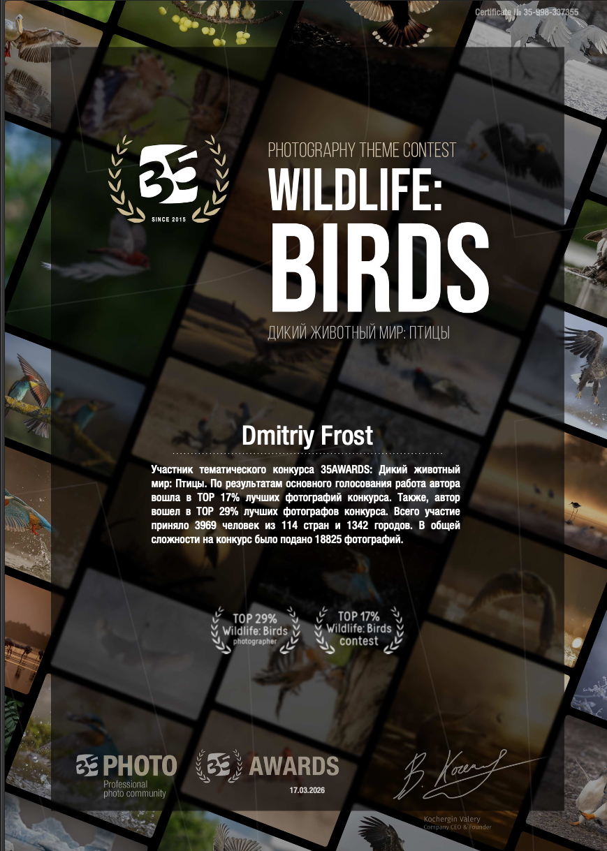 Сертификат участника 6-го международного фотоконкурса "35AWARDS"
